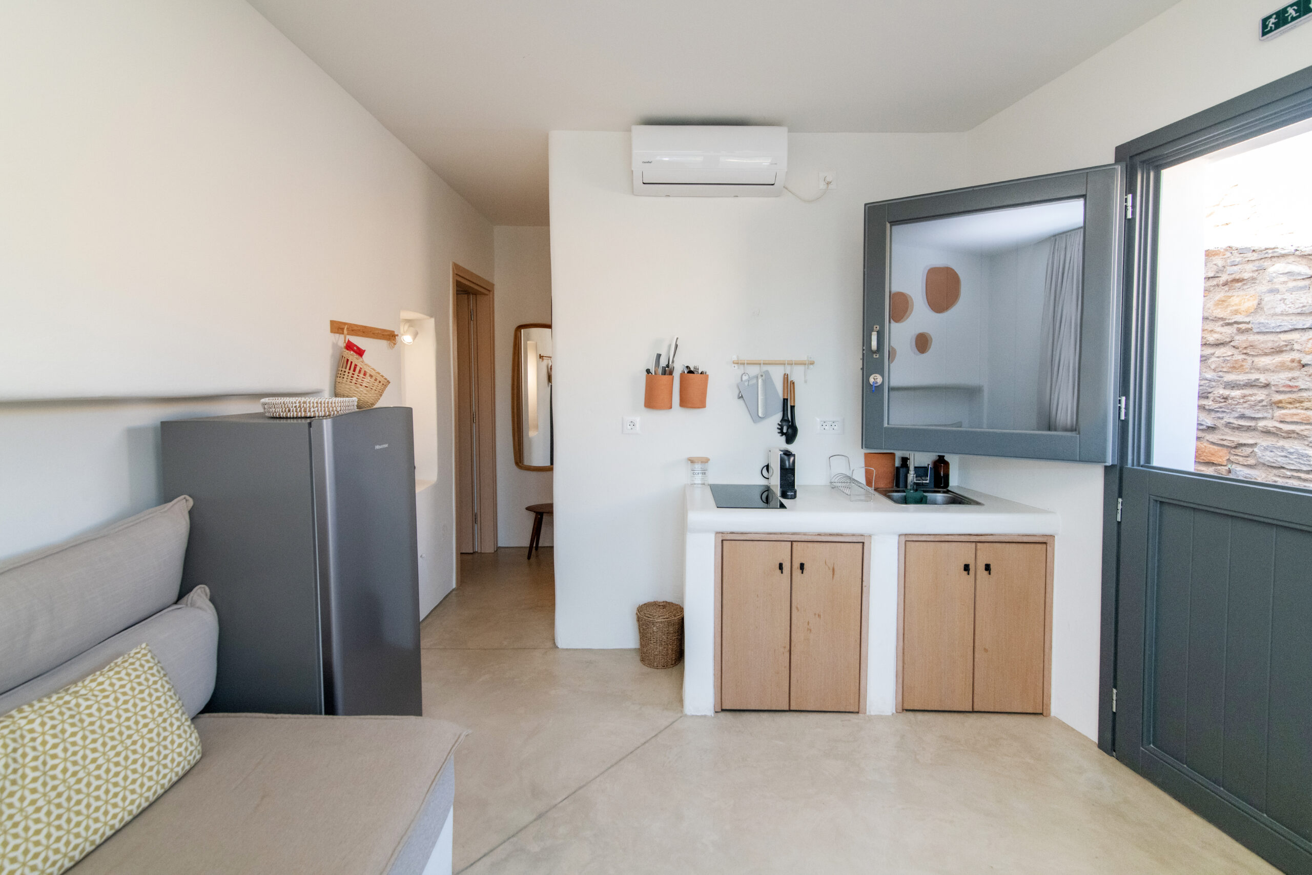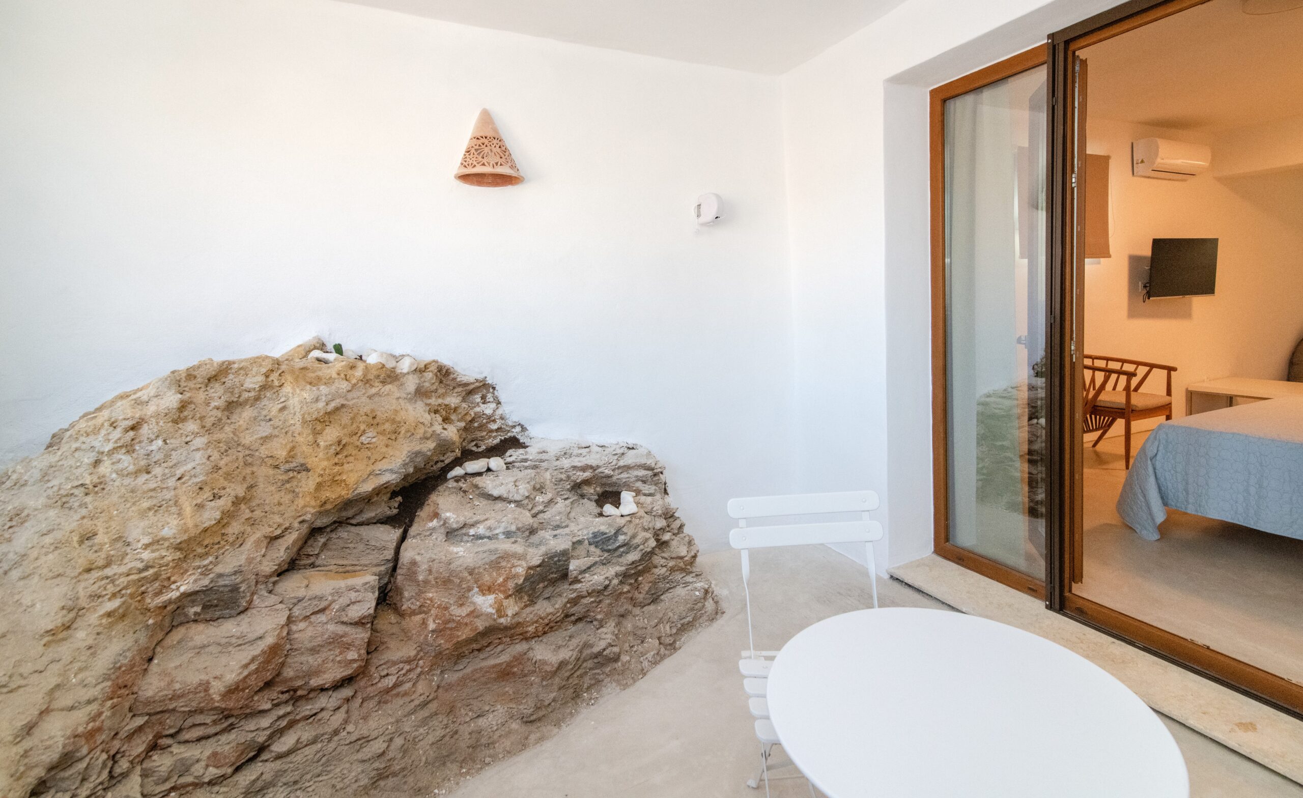 המרפסת הפרטית משמשת כמרחב מגורים מורחב, בו האורחים יכולים להירגע עם המראות והקולות של הים. מרוהט עם מקומות ישיבה נוחים, אזור חיצוני זה מושלם לקפה של בוקר, קוקטיילים בערב, או פשוט ליהנות מהשקיעה. בפנים, הסוויטה מתהדרת בטרקלין ופינת אוכל מרווחים, אידיאליים לחלוק ארוחות או לנוח אחרי יום של חיפושים.